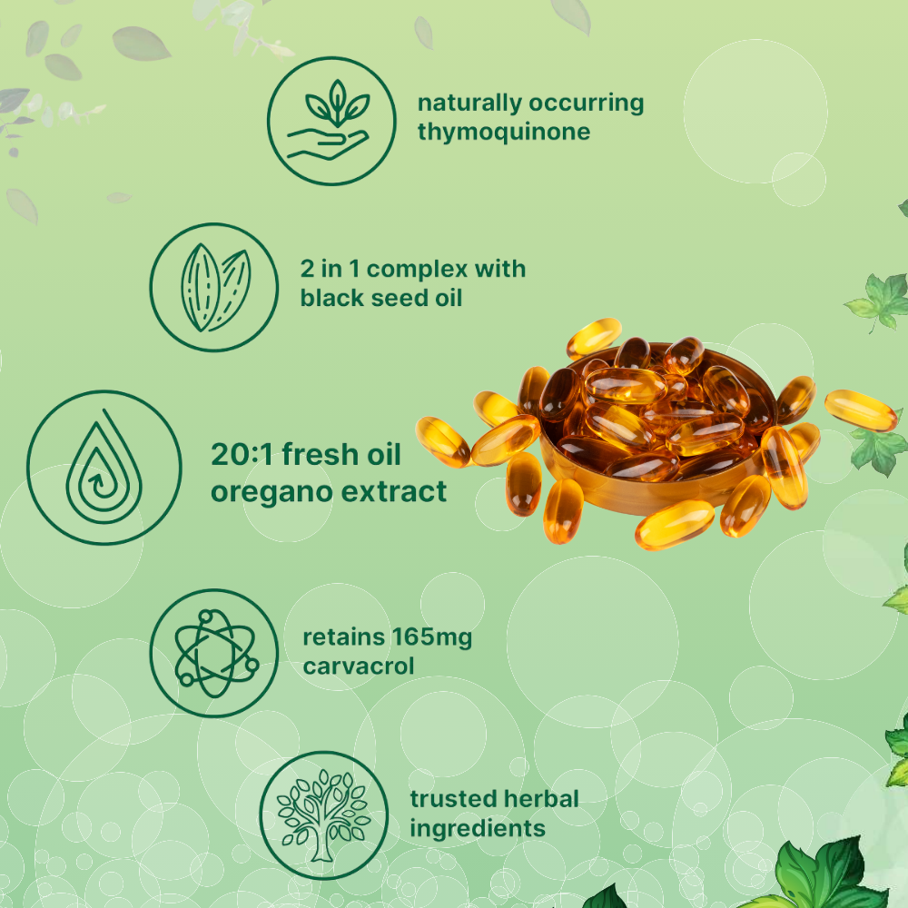 Oregano oil contains carvacrol, a potent compound that disrupts parasite cell membranes, while black seed oil's thymoquinone enhances the antiparasitic effect while supporting healthy gut flora. Together, they create a comprehensive approach to eliminating harmful organisms and restoring your natural balance.